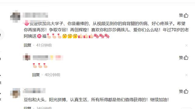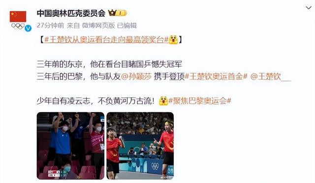除了祝贺他再创辉煌之外,也有粉丝在担心王楚钦的伤势。