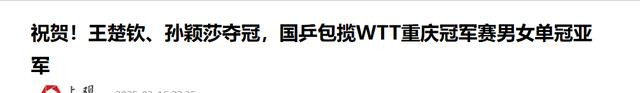 上观新闻——祝贺!王楚钦、孙颖莎夺冠,国乒包揽WTT重庆冠军赛男女单冠亚军