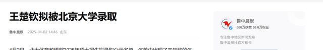 鲁中晨报——王楚钦拟被北京大学录取