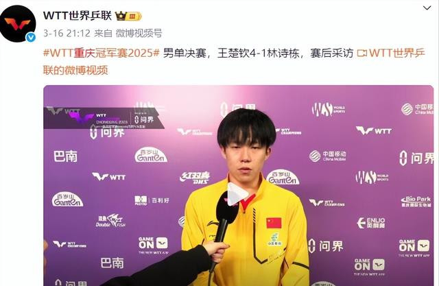此次重庆冠军杯的比赛之中,王楚钦以4-1的成绩击败自己的队友林诗栋。